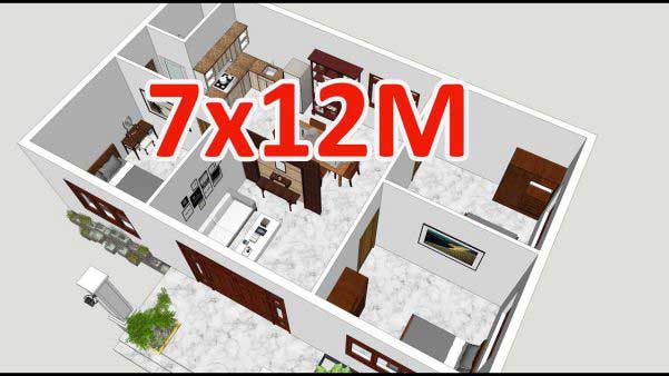 Bản thiết kế mặt bằng công năng tiện nghi dành cho mẫu nhà cấp 4 7x12