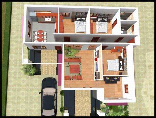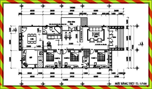 Với mẫu nhà cấp 4 này với thiết kế chủ đạo gồm ba phòng ngủ, một phòng khách, một phòng bếp, hai nhà vệ sinh, có chỗ để ô tô và có một gian thờ. Có thể xem đây là kiểu nhà chia gian rất hợp lí và đầy đủ, phù hợp với gia đình có khoảng 5 thành viên. Cách bày trí từng gian hợp lí thể hiện sự thông minh và và tiết kiệm tối đa diện tích sử dụng. Đối diện với cửa chính của ngôi nhà được bố trí làm phòng khách voi diện tích lớn nhất so với các gian khác để chứa các các tiện nghi và nội thất chủ yếu của gia chủ.