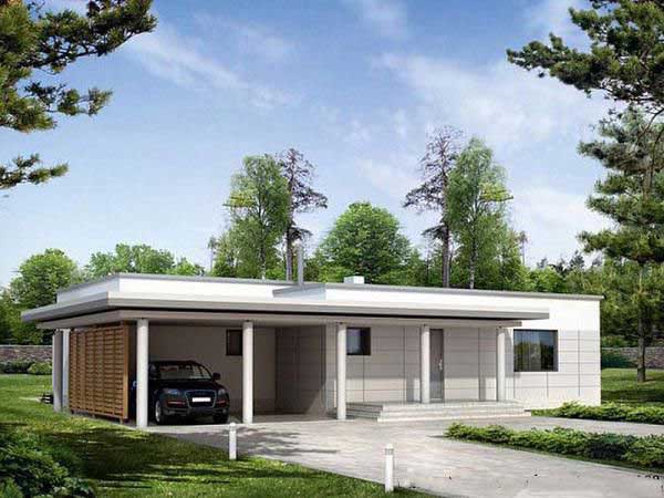 Với sự phổ biến của ô tô hiện nay đặc biệt là ở thành thị thì vị trí đỗ xe cũng là vấn đề đau đầu đối với nhiều ngừơi.Vì vậy, đây là thiết kế phù hợp với những hộ gia đình sở hữu ô tô riêng, dưới đây là 1 thiết kế gợi ý cho mẫu nhà này. Căn nhà có hình dạng như 1 khối hộp chữ nhật đơn giản, phần mái là mái bằng , tông chủ đạo là màu trắng ,mặt đứng được ốp gạch trắng sáng sủa, sạch sẽ.