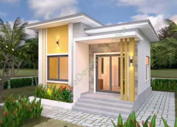 Mặt đứng được trang trí bởi các khoảng tường cột màu vàng làm điểm nhấn hút mắt,lạ. Mặt bằng bao gồm : 1 phòng khách , 1 phòng ngủ , 1 phòng bếp + phòng ăn , 1 nhà vệ sinh . Các căn phòng được sắp xếp hợp lí , thông minh , gọn gàng và phục vụ nhu cầu sinh hoạt cho gia chủ.