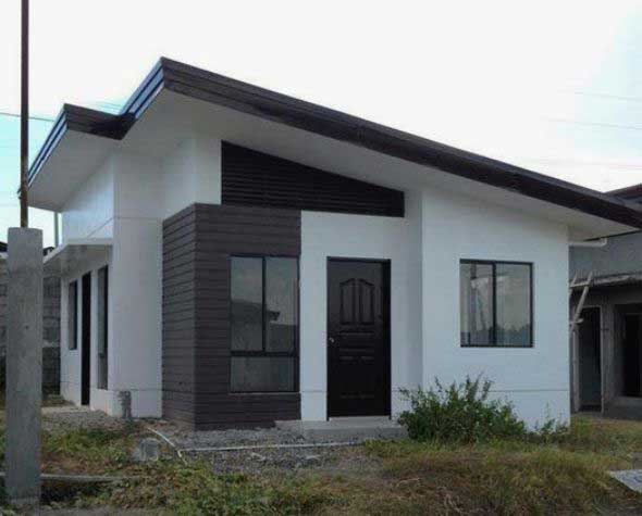 Căn nhà sử dụng tông trắng làm chủ đạo, phần mái hay cửa, viền cửa màu nâu đen sang trọng . Tường được sơn trắng kết trang trí ốp gạch nâu xám.Cửa kính tạo tầm nhìn rộng, thoáng và nhiều ánh sáng cho căn nhà. Mặt bằng bao gồm 1 phòng ngủ được bố trí bên phải căn nhà , bên trái là phòng khách thông với phòng ăn + phòng bếp , 1 phòng vệ sinh . bên hông căn nhà được bố trí thêm cửa có thể mở tạo không gian thoáng và mở cho căn nhà .