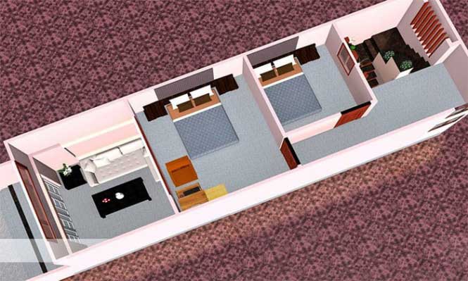 Nhà đẹp này xây dựng trên tổng diện tích chỉ 65m2, lựa chọn phong cách hiện đại làm chủ đề chính. Bản vẽ trong ngôi nhà có đến 2 phòng ngủ rộng rãi, sân để xe, phòng khách, không gian nấu nướng, bàn ăn và phòng vệ sinh chung. Các căn phòng liên kết nhau chặt chẽ, giúp việc đem lại cảm giác thoải mái nhất cho gia đình khi sinh hoạt trên diện tích nhỏ hẹp.