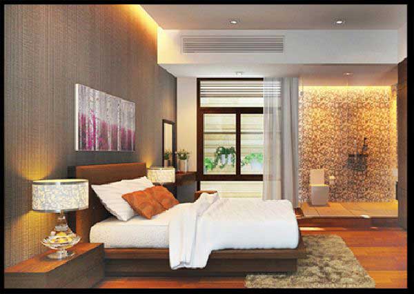 Không gian ngủ với cũng với tone màu trắng cùng với tone nâu, kết hợp cùng ánh sáng đèn led vàng mang đến không gian ấm áp. Với sự kết hợp này gia chủ sẽ có những giấc ngủ sâu nhấc, nạp năng lượng tươi mới chuẩn bị cho một ngày làm việc với 100% năng lượng.