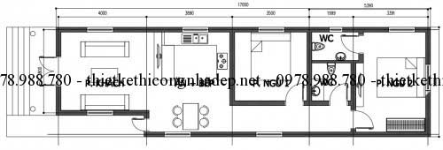 Mẫu thiết kế này sẽ bao gồm 1 phòng khách, 1 phòng ăn và bếp, 2 phòng ngủ và 2 phòng vệ sinh. Nhìn chung, phối cảnh nhà cấp 4 khá đơn giản nhưng vẫn rất tinh tế và nhẹ nhàng. Theo đó, độ cao của nền tôn thành 5 bậc góp phần giúp bảo vệ ngôi nhà vào những ngày mưa lớn hay lũ lụt. Diện tích xây dựng căn nhà là 5x17m, diện tích nhà cấp 4:80m2. Chi phí dự trù cho bản mẫu này là từ 320-350 triệu.