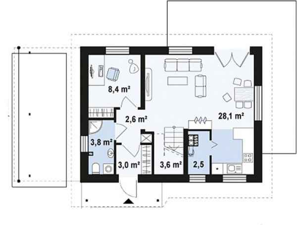Hình khối của mẫu nhà cấp 4 này tập trung vào các khối phẳng, đơn giản và được thiết kế với các khối tường cao, kết cấu chính vững chãi, thông thoáng kết hợp với cầu thang mang lại nét thẩm mỹ đồng bộ. Các cột được thiết kế vuông vắn kết hợp với gạch bông tạo điểm nhấn và hình thức kiến trúc vuông vắn, tôn lên vẻ đẹp khang trang, khỏe khoắn cho ngôi nhà.