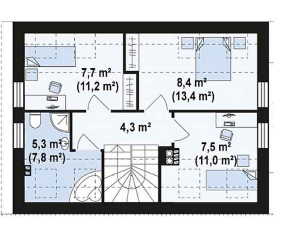 Tầng lửng của mẫu nhà cấp 4 có gác lửng 7x10m có không gian để đặt những không gian cần sự riêng tư như phòng ngủ. Tầng lửng gồm 3 phòng ngủ mỗi căn 13,4m2, 11,2m2, 11m2 và 1 phòng vệ sinh rộng.