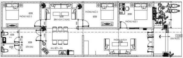 Mẫu nhà cấp 4 diện tích 7x20m có 3 phòng ngủ tiện ích