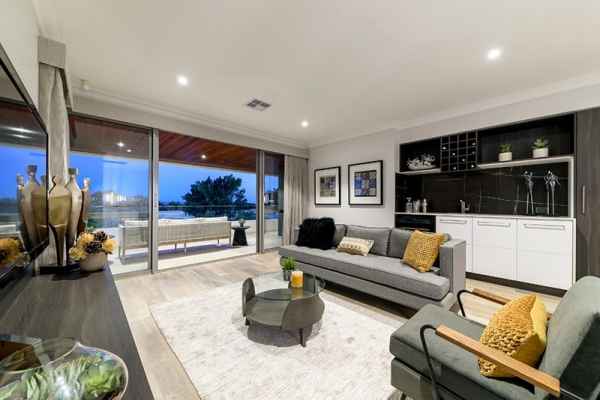 Thiết kế phòng khách khá rộng và thoáng, hệ thống cửa rộng kết hợp kính trong suốt càng tôn lên vẻ đẹp rộng rãi, thoáng mát. Bộ sofa màu xám đơn giản, tiện nghi ở trung tâm được trang bị hệ thống tủ, kệ hiện đại sẽ đáp ứng tối đa nhu cầu sử dụng của gia chủ.