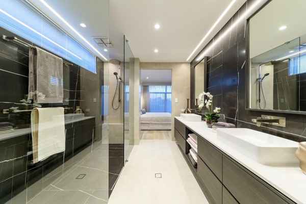Phòng tắm được thiết kế rộng rãi, hiện đại với bồn tắm, vòi hoa sen sang trọng, hệ thống gương sang trọng linh hoạt là một lợi thế rất lớn cho gia chủ và các thành viên có một khoảng thời gian thoải mái và hạnh phúc.