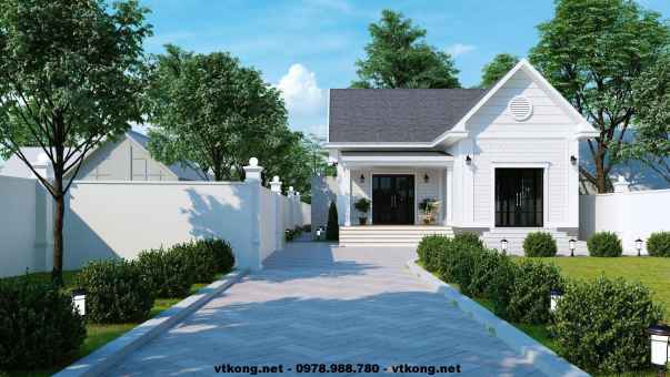 Kiến trúc của mẫu nhà cấp 4 mái thái hình chữ L, mẫu nhà cấp 4 mái thái hình chữ L với phần mái chính là phần thân và phần mái phụ là không gian bếp ăn được đặt bên ngoài. Khi nhà có khách, bếp mở thêm cửa phụ để đi ra ngoài hoặc phụ nữ đi chợ sẽ thuận tiện hơn. Màu chủ đạo của thiết kế vẫn là tone màu trắng tinh khôi sang trọng kết hợp với màu ngói xám tạo nên sự nổi bật cho ngôi nhà.