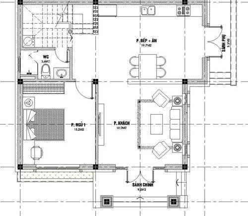 Phòng khách: Là căn phòng rộng và đẹp nhất trong căn hộ, thường thể hiện cá tính và sở thích của gia chủ. Diện tích của phòng khách thường từ 14-30 m2. Các phòng thường dẫn thẳng ra sân và sảnh. Cửa thường rộng 1,2m cao 2,2m còn nếu rộng trên 2m thì mở 2 cánh hoặc 4 cánh.