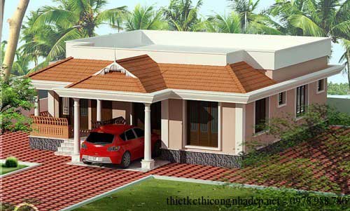 Mẫu nhà cấp 4 hiện đại và sang trọng bởi phần mái Thái đẹp và nổi bật ở phía trên. Kèm theo đó là phần mái bằng tạo sự tiện nghi và kết hợp thực hiện được nhiều công năng.