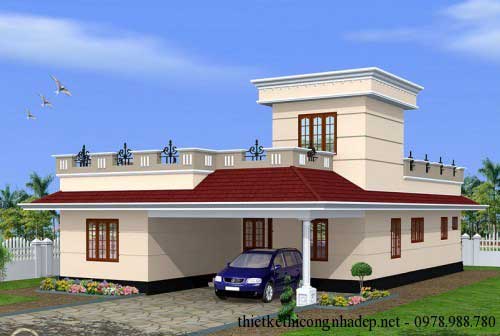3. Mẫu nhà cấp 4 mái bằng có tầng tum hiện đại
