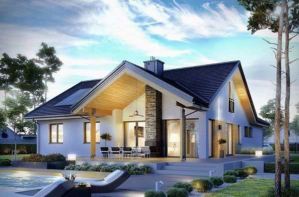 Mẫu thiết kế nhà cấp 4 diện tích 6x17m này rất hiện đại, đặc biệt qua cách bố trí mái thái lợp ngói đen và sơn tường trắng sang trọng. Ngôi nhà nhiều cửa sổ này rất tuyệt để có tầm nhìn rộng lớn. Nếu gia chủ có khả năng chi trả thì nên xây ở ngoại ô hoặc nông thôn để tận dụng tối đa sự thông thoáng.