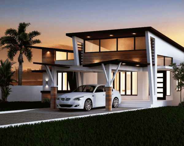 Mẫu tiếp theo là mẫu nhà cấp 4 có gác lửng mái bằng hiện đại. Ngôi nhà bị đè bẹp ngay từ cái nhìn đầu tiên với những điểm nhấn màu trắng kết hợp gạch Inax xám chia tường thành những ô vuông nhỏ và những mảng tường bên đơn điệu. Toàn bộ cửa màu đen được kết hợp với cửa và hàng rào để tạo ra một cái nhìn hài hòa. Ngôi nhà cấp 4 này có đầy đủ các tính năng mà bạn cần.