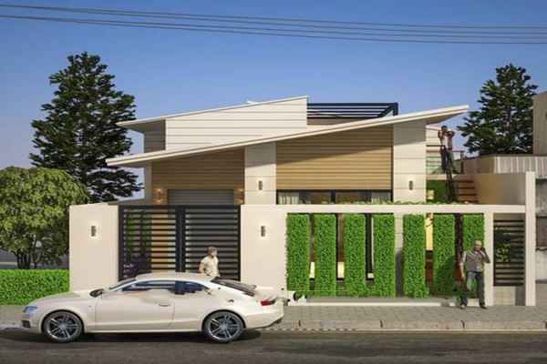 Diện tích xây dựng 7x20 m thuận lợi cho việc xây nhà cấp 4 khang trang. Ngôi nhà cấp 4 được thiết kế với tông màu trắng chủ đạo, kết hợp với mái tôn màu đỏ, ngang dưới 7 m và sâu 20 m. Vành mái được đổ bê tông. Sàn sân trong được sử dụng làm phông nền bằng đá cẩm thạch, làm tăng thêm kiến trúc cho ngôi nhà mái thái 4 sao này. Phối cảnh chim bay với nền hiên lát gạch hoa, mái tôn đỏ.
