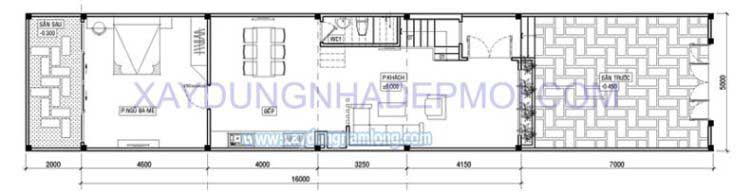 Bản vẽ mặt bằng mẫu thiết kế nhà phố 3 tầng diện tích 5x16