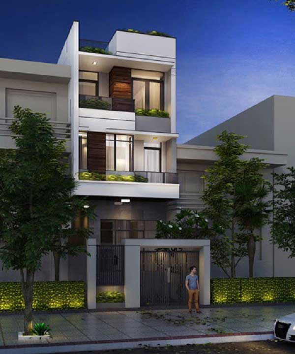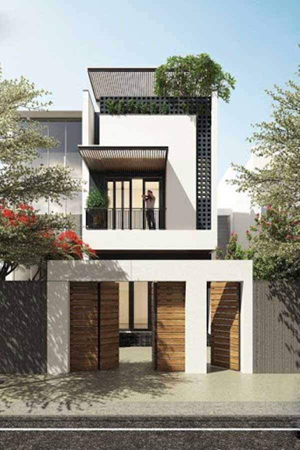 Hiện nay, mẫu nhà mặt phố 5m như trên đang rất được giới trẻ ưa chuộng, chỉ cần nhìn sơ qua thôi cũng đủ cho chúng ta thích thú với vẻ bề ngoài cực kỳ độc đáo, nét hiện đại thể hiện ở phong cách thiết kế. Điểm nhấn nằm ở phần cổng và phần sân thượng trên cùng. Phần mái đã được thay thế bởi một sân thượng xanh ngát tràn ngập cây xanh, cực kỳ thích thú nếu bạn là người yêu thích thiên nhiên.