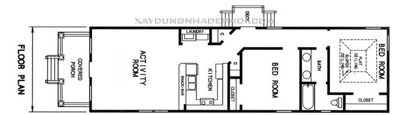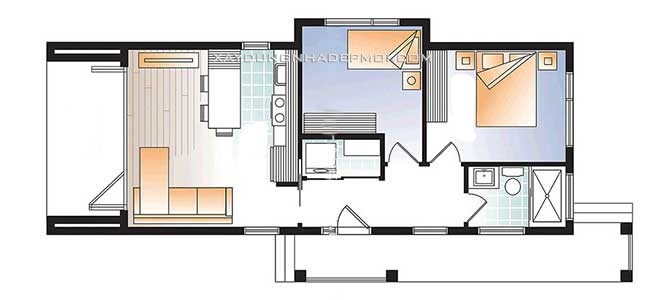 Bản vẽ mặt bằng thiết kế nhà ống 1 tầng 2 phòng ngủ