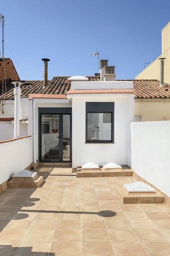 Phối cảnh bên ngoài ngôi nhà không mang quá nhiều màu sắc trang trí và chúng được sử dụng từ nét tối giản nhằm tiết kiệm chi phí ngay ban đầu. Nhìn rõ thì bạn có thể thấy chỉ là một hình khối tạo nên một ngôi nhà, tuy vậy vẫn làm người nhìn có cho mình một cảm giác lạ mắt và mang hiệu ứng đặc sắc từ kết cấu ở phần cửa ra vào. Ngôi nhà sử dụng phần mái bằng làm chủ đạo kèm theo lạ kết cấu mái được đổ tấm vô cùng chắc chắn, ngăn cách nhiệt độ đi xuống bên dưới ngôi nhà.