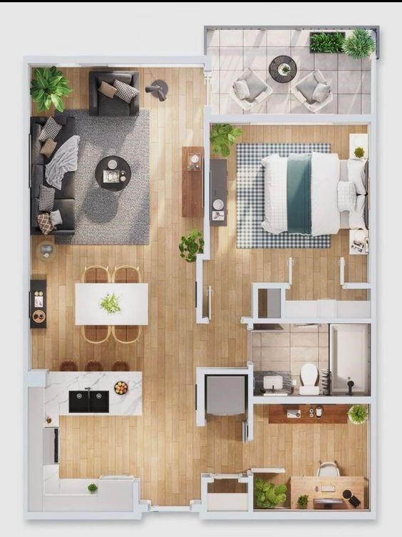 Đối với những gia chủ không chú trọng quá nhiều đến lối kiến tạo từ không gian mở mà tập trung vào các chức năng chính và phân chia cụ thể từng gian phòng chức năng thì bản vẽ thứ 2 này sẽ là một phương án xây dựng hợp lý. Ngôi nhà thông qua bản vẽ đã làm nên một phong cách hoàn toàn riêng với các khối hộp được kết hợp đan xen khi diện tích không quả lớn nhưng vẫn thể hiện đầy đủ nền tảng hiện đại vốn được sử dụng rất nhiều trong năm 2021 này.