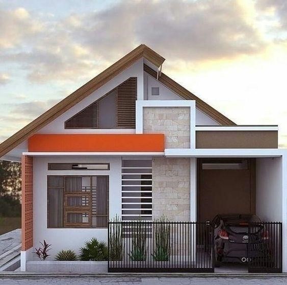 Mẫu nhà tiếp theo có bố cục khác hẳn so với các thiết kế mà chúng tôi thường chia sẻ. Nét mới lạ được phản ánh trực tiếp từ các gian nhà được chia ra thông qua các màu sắc khác nhau kết hợp với sân vườn thoáng mát.