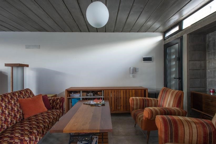 Nội thất phía bên trong ngôi nhà tạo cho người nhìn một sự lạ mắt và được hình thành từ chính ý tưởng đơn giản, nét sống khoa học và thể hiện rõ trong hình thức trang trí. Phân bổ tách biệt ra 2 bên tạo khoảng không lớn làm nên sự thông thoáng cần có cho ngôi nhà ống, vốn là nhược điểm mà chúng mang đến. Gia chủ đã chọn màu sắc đối lập làm đánh bật lên các vật liệu, vật dụng với dấu ấn riêng biệt.