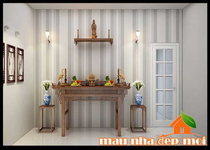 Hướng ra ban công là phòng ngủ chính master của 2 vợ chồng chị Lan và phòng thờ của gia đình. Sở dĩ phòng thờ luôn được thiết kế hướng ra ban công bới đây là vị trí đẹp được đánh giá có phong thủy tốt. Hơn nữa nếu đặt phòng thờ gần không gian thoáng như cửa sổ, ban công thì việc không gian sẽ không bị bí bách mỗi khi gia đình hướng khói. Phương án này được chị Lan khá hài lòng.