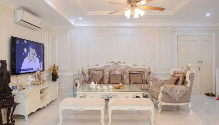 Nội thất phòng khách sang trọng đúng với phong cách kiến trúc cổ điển.