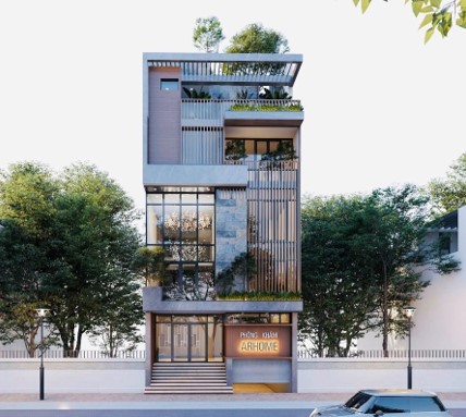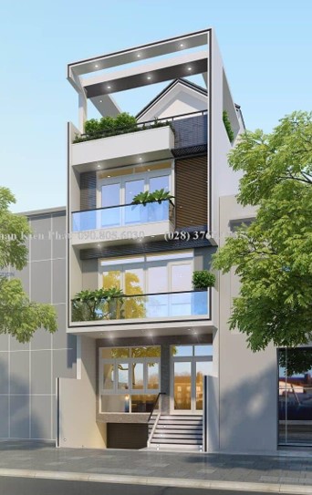 Ngôi nhà với diện tích 5x20m quả thật đã là một lợi thế từ diện tích mà không gian bên trong đã thể hiện với một sự tiện nghi, sang trọng khi cập nhật những xu hướng mới nhất từ thiết kế. Là một gam màu trung tính thể hiện ở mặt tiền kèm thêm là các hệ thống kính cường lực được phân bổ một cách cụ thể ở từng mặt bằng làm lấy sáng, đón gió hiệu quả nhất. Mà hệ thống cây xanh cũng được phân bổ theo từng tầng giúp ngôi nhà có thêm điểm nhấn với màu sắc xanh tươi.
