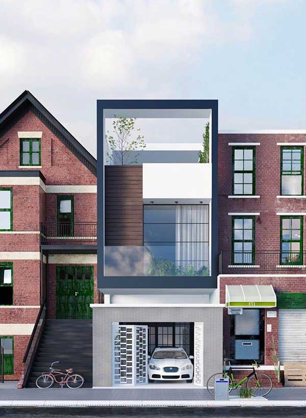 Với thiết kế mái xéo mới mẻ, căn nhà phố 5x12 được thiết kế nổi bật bởi gam màu trắng chủ đạo kết hợp cùng màu nâu sang trọng tạo nên một chỉnh thể màu sắc hoàn hảo và hài hòa. Tạo điểm nhấn cho ngôi nhà bằng việc xây dựng các rãnh mái song song khép kín, căn nhà trở nên nổi bật và mới lạ. Hệ thống cửa sử dụng kính cường lực trong suốt chắc chắn giúp luồn ánh sáng bên ngoài có thể đi vào và chiếu sáng cho các không gian khác trong nhà. Là phong cách mới mẻ hiện đại được các chủ đầu tư quan tâm khá nhiều ngày nay.