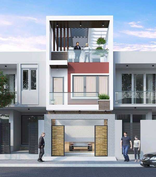Mẫu nhà phố 5x12 nổi bật bởi gam màu trắng nhã nhặn, nhẹ nhàng kết hợp cùng các chi tiết màu tối trên ngoại thất tạo nên sự tương phản, mới mẻ cho căn nhà. Mặt tiền có sân khá rộng nên thuận tiện cho việc để xe cũng như các phương tiện đi lại hàng ngày được bảo đảm an toàn, an ninh. Thiết kế lam chắn ở ban công và sân giúp lượng ánh nắng không hắt quá nhiều vào nhà mà vẫn hấp thụ được nguồn sáng đi vào phía bên trong. Cách bố trí 2 cổng cũng rất tiện, vì cổng lớn để di chuyển xe ô tô vào nhà và cổng phụ thuận tiện cho việc đi ra vào bên trong căn nhà. Nhìn chung, căn nhà mang tới đầy đủ các công năng hữu ích mà các hộ gia đình ngày nay rất cần thiết trong cuộc sống hàng ngày.