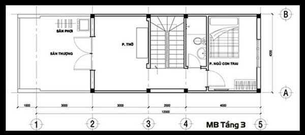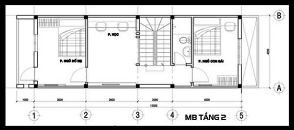 Bản thiết kế mặt bằng mẫu nhà phố 5x12