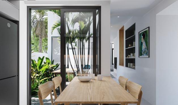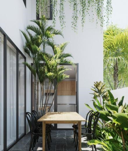 Gia chủ không quên thiết kế cho mình một bàn ăn nằm ngay phía ngoài như một không gian hoàn toàn mới lạ mà còn là nơi thư giãn, làm việc học tập vô cùng hợp lí cho các thành viên. Mặt khác, đây cũng là một không gian quan trọng mà mẫu nhà ống cần có để tạo nên một nguồn năng lượng xanh cho cuộc sống hiện đại vốn tấp nập và bộn bề bên ngoài. Là nơi để trở về nghỉ ngơi, nạp năng lượng để tiếp tục phát triển cho ngày mai.