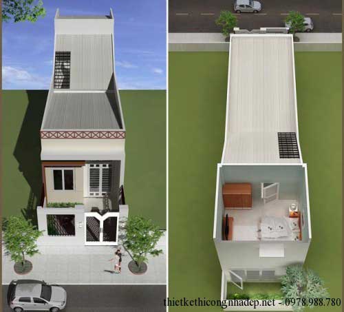 Phối cảnh các góc nhìn của mẫu nhà ống cấp 4 có gác lửng 4x19m