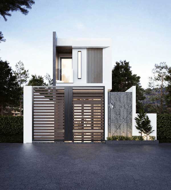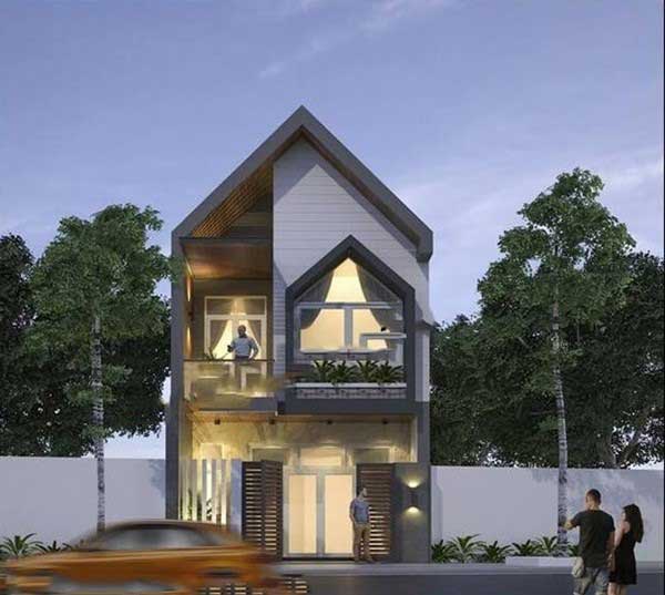 Nổi bật với gam màu trắng chủ đạo kết hợp cùng các mảng màu tối của chi tiết ngoại thất, căn nhà 2 tầng 5x20 mang tới nét đẹp trẻ trung và hiện đại. Có sân rộng và thoáng mát là một ưu điểm, có thể để xe và các phương tiện đi lại hàng ngày. Tầng trên được thiết kế có ban công nhỏ, còn lại là lam chắn và ngoại thất khá đơn giản và đã được tối ưu. Cổng được lắp đặt hệ thống cửa sắt chống gỉ, các bức tường rào đổ bê tông có khối xám khối trắng đan xen nhau tạo nên sự tương phản. Nhìn chung, căn nhà xây dựng rất đẹp lẫn về kiến trúc và thẩm mỹ, là sự lựa chọn không thể từ chối cho các hộ gia đình ngày nay.