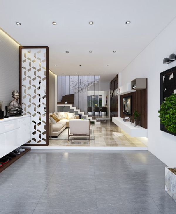 Mẫu nhà 3 tầng 5x20 tone trắng được hiểu là toàn bộ bề mặt tiền được sử dụng màu trắng chủ đạo, xuyên suốt các tầng. Nếu trong tưởng tượng của bạn về mẫu nhà này sẽ là sự nhàm chán, không có điểm nhấn thì có lẽ chính bạn đã nhầm. Ngôi nhà này sẽ không khiến bạn nhàm chán một chút nào bởi chính thiết kế vô cùng ấn tượng ở khu vực mặt tiền. Sử dụng kiến trúc liền tầng, kết hợp cùng tiểu cảnh cây xanh được bố trí tại khu vực đánh trực tiếp vào thị giác chính là sự thu hút với bất kỳ ánh nhìn nào về phía ngôi nhà.