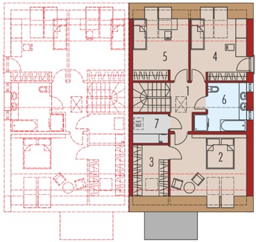 Với các gia đình có số lượng lớn thành viên kết hợp sinh sống thì kiến trúc này sẽ là một sự lựa chọn phù hợp bởi vừa thể hiện được điểm chung và riêng khi 2 gian nhà có các chức năng khá giống nhau. Mà theo chia sẻ của chủ đầu tư, anh muốn xây dựng theo hình thể này là để đón cha mẹ lên sinh sống để tiện cho việc chăm sóc mà gia đình vẫn có sự riêng tư nhất đình.
