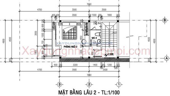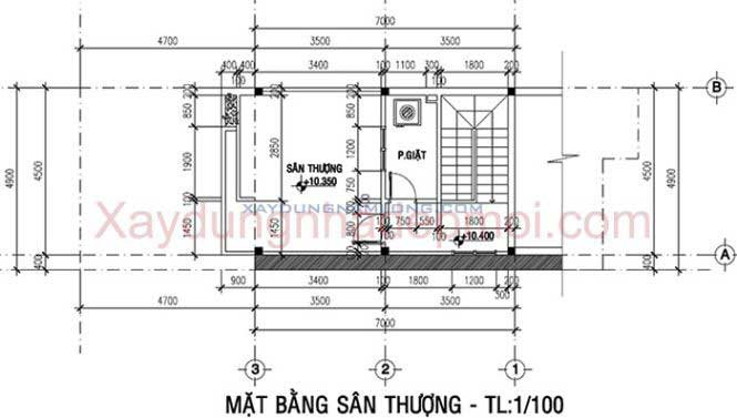 Bản vẽ chi tiết căn nhà phố 1 trệt 2 lầu sân thượng hiện đại