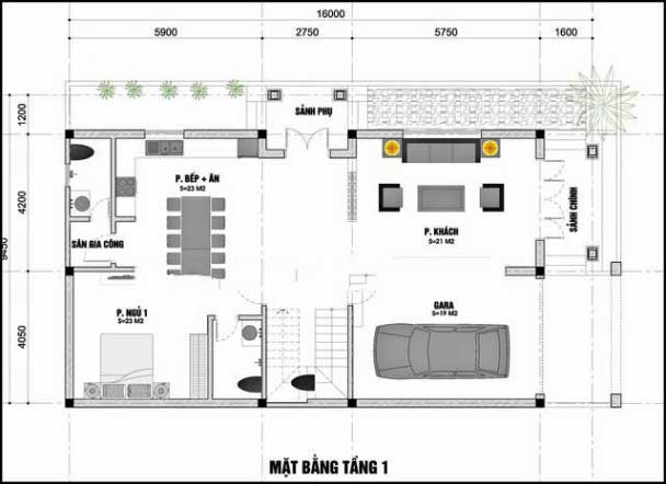 Phương án mẫu nhà phố 2 tầng 100m2 phong cách hiện đại mới nhất