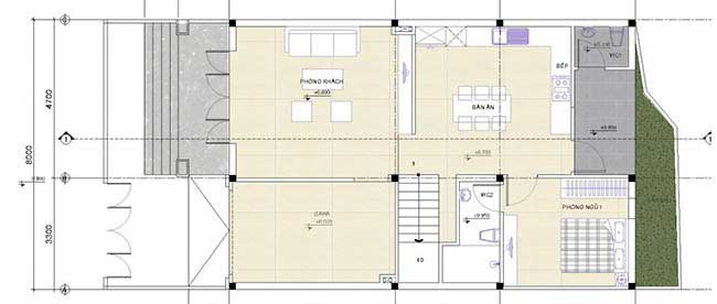 - Tổng diện tích xây dựng: 8 x 10 = 80m2.