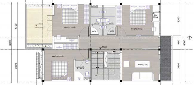 Bản vẽ tầng 2: 3 Phòng ngủ đều có 3 phòng vệ sinh riêng – phòng sinh hoạt chung – ban công đón gió. Đối với các hộ gia đình có nguồn thu nhập ổn định, thì kiến trúc nhà phố 2 tầng ở nông thôn này là sự lựa chọn đáng quan tâm đến. Nếu bạn chưa có kinh nghiệm trong việc xây nhà, hoặc không biết lựa chọn ý tưởng thiết kế phù hợp với kinh phí hiện tại hãy nhờ đến công ty xây dựng đưa ra giải pháp thi công hợp lý nhất. Nhờ đến đơn vị thiết kế – thi công có nhiều năm kinh nghiệm sẽ giúp bạn giảm thiểu được những rủi ro và phát sinh chi phí không mong muốn. Đồng thời hợp tác công ty xây dựng có nhiều năm trong nghề sẽ biết được chi phí xây dựng trọn gói, thương lượng giá tốt với bên cung cấp vật liệu xây dựng.