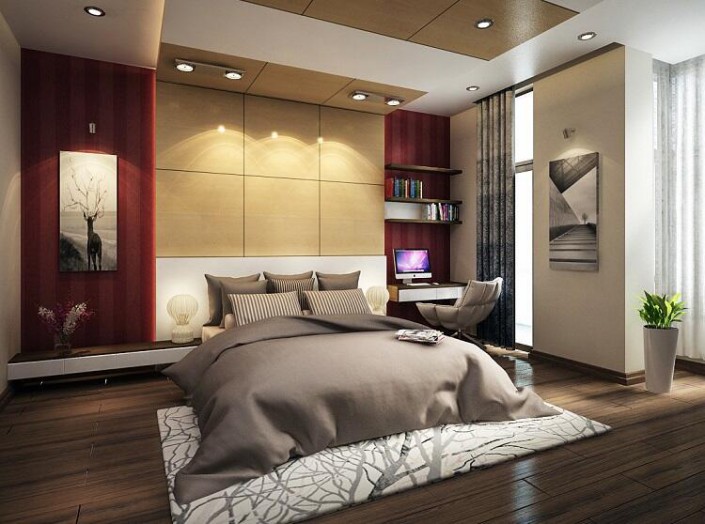 Phòng ngủ của bố mẹ được thiết kế rộng rãi với màu sắc ấm áp. Phần nội thất cũng được sắp xếp gọn gàng, mang đến sự thông thoáng cho gia chủ.
