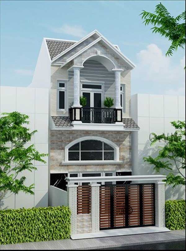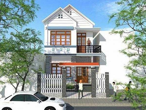 Mẫu nhà phố 2 tầng mái thái mang thiên hướng cổ điển hòa quyện với hơi thở hiện đại, nếu chiêm ngưỡng ngôi nhà một cách tỉ mỉ tôi tin chắc rằng bạn sẽ bị thu hút bởi từng không gian. Ban công tầng 2 không quá rộng nhưng lại rất dễ thương với cửa đẩy và rèm cửa màu trắng, sẵn sàng cho chủ nhân chiêm ngưỡng vẻ đẹp thế giới xung quanh lung linh và tuyệt vời đến như thế nào. Với thiết kế cửa gỗ màu nâu càng tạo nên sự nổi bật riêng cho ngôi nhà của mình.