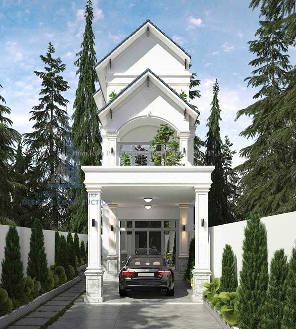 Thiết kế mẫu nhà phố 2 tầng mái thái này với gam màu trắng hiện đại, vừa sang trọng, vừa mang nét hoang sơ vừa nồng nàn hơi thở hiện đại. Tưởng chừng như một màu trắng từ trên xuống dưới sẽ gây nhàm chán, nhưng không nó lại rất đồng đều và tiện nghi. Tầng 1 có thể đặt thêm bàn ghế đá tại sân để tạo 1 không gian riêng cho cả gia đình sum vầy, tâm sự vui vẻ, hạnh phúc vào cuối ngày. Sẽ thật tuyệt nếu bạn trang trí thêm xung quanh nhà những dàn dây leo hay cây hoa lung linh nữa nhé.