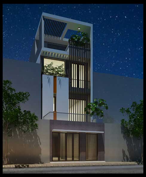 Dự án thiết kế nhà phố 3 tầng 5x17m được thể hiện bởi hệ lam thanh nhã, mảnh mai, đơn giản liên hoàn kết nối tại mặt tiền ngôi nhà. Với thiết kế này đem lại cho người ta một cảm giác ấn tượng với vóc dáng năng động, đầy trẻ trung, cực kỳ thu hút. Mặt tiền này chúng tôi triển khai theo quy cách tiếp cận chủ động với môi trường tự nhiên mang lại ngôi nhà nhiều không gian gần gũi.