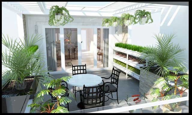 Nếu để ý kỹ thiết kế này, ta có thể thấy hệ thống mái này còn giúp cho sân thượng thêm sống động và tràn đầy sức sống với thảm thực vật xanh, cây cỏ, hoa lá ngập tràn. Bạn có thể thoải mái tạo cho ngôi nhà một không gian xanh mát, hòa hợp với thiên nhiên.