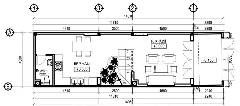 Chiều ngang chỉ đúng 4m vô cùng hạn chế, đặc trưng của mẫu nhà phố hiện nay, khiến gia chủ cân nhắc bố trí việc bố trí để đảm bảo không gian cho từng thành viên cũng như không gian chung của cả gia đình.