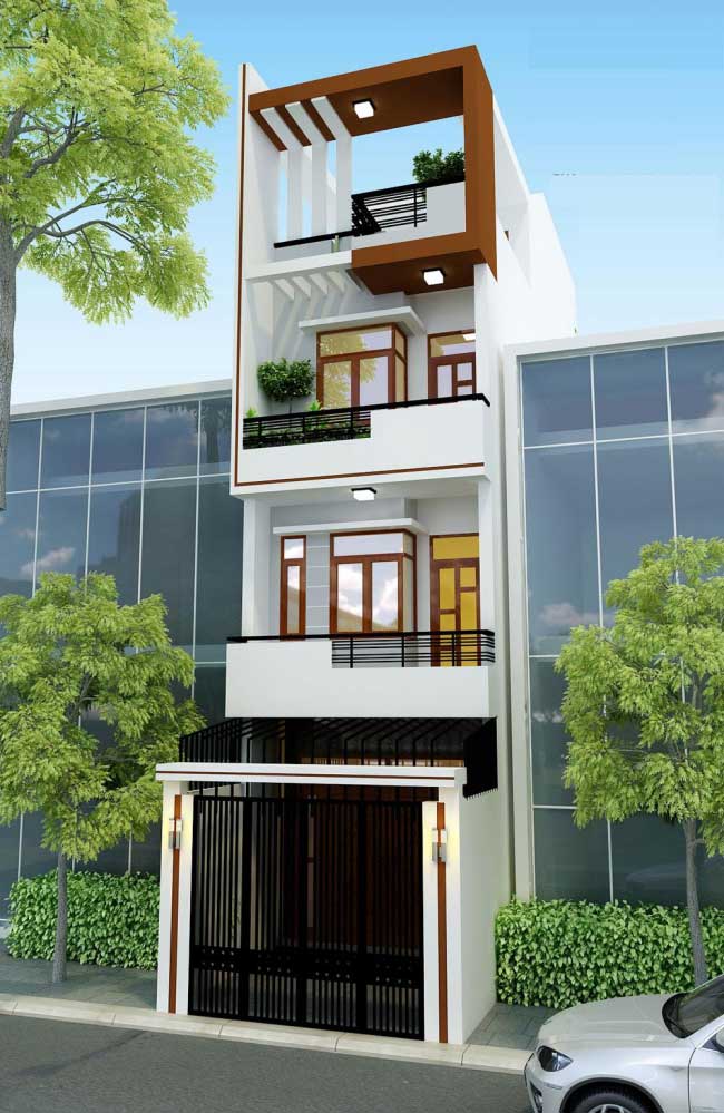 Mặt tiền: Vì là phong cách hiện đại, nên kts đã lựa chọn tone màu sơn trắng sáng phối hợp hài hòa cùng các chi tiết trang trí có màu sắc trung tính. Sân phía trước dành riêng khoảng diện tích nhỏ làm sân đề xe hơi cho gia chủ, bao quanh sân xe là hàng rào cao kiên cố được làm bằng sắt thép Việt Nhật loại tốt. Ban công các tầng rộng rãi đều được bố trí các loại cây xanh tiểu cảnh nhỏ, vừa đem lại cái nhìn bắt mắt cho mặt tiền, vừa đem lại nguồn không khí thoáng đãng cho các thành viên yêu quý.