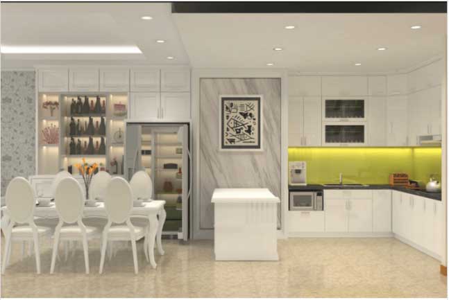 Cách bố trí chức năng sử dụng, ngăn tủ nhà bếp được sắp xếp rất gọn gàng, tạo nên không gian rộng rãi.